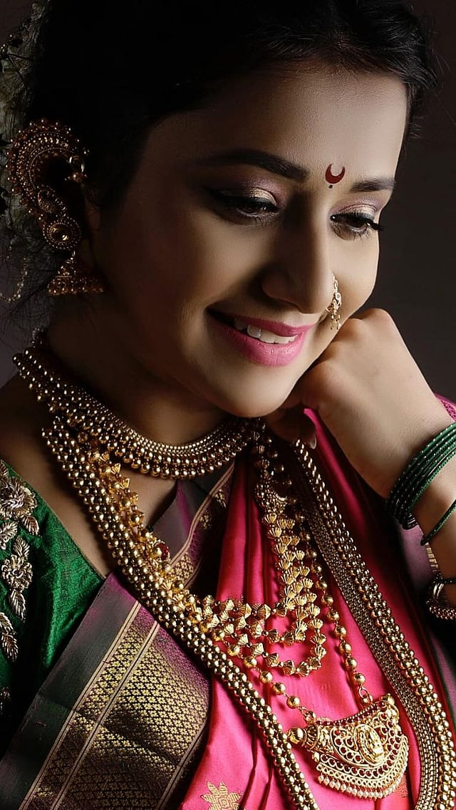 जांभळी साडी, हिरव्या बांगड्या आणि कपाळी कुंकू अस्सल मराठी बाणा सौंदर्य खुललं आहे