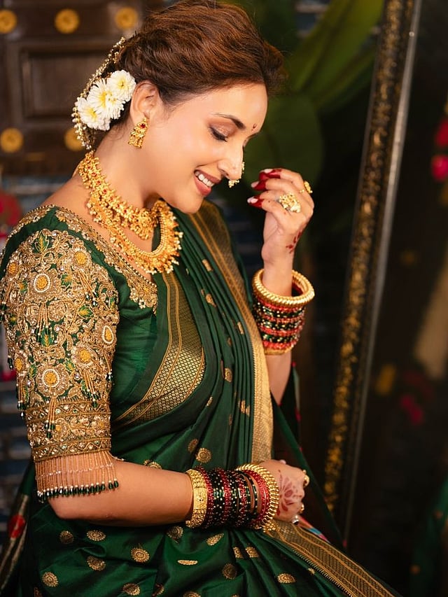 साडीवर तिने दागिने, केसांत गजरा आणि हातात बांगड्या असा मराठमोळा लूक केला आहे.
