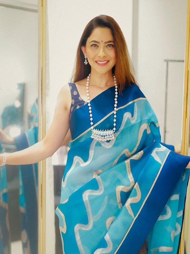 सोनालीने नुकतेच सोशल मीडियावर निळ्या रंगाच्या साडीतील सुंदर फोटो शेअर केले आहे.