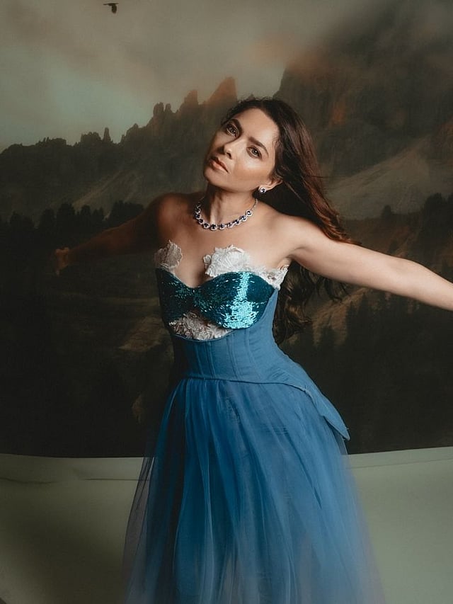 या फोटोशूटसाठी सोनालीने खास ब्ल्यू अॅन्ड व्हाईट गाऊन ड्रेस परिधान केला आहे.