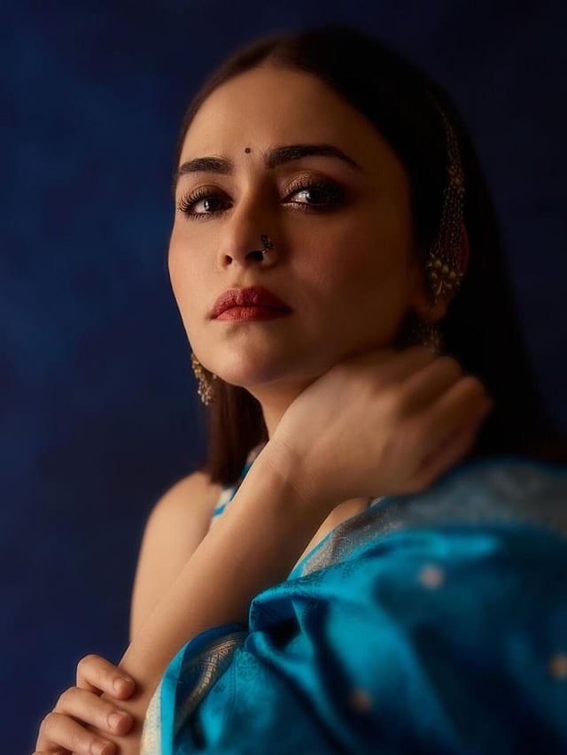 अमृता खानविलकरने नुकतेच सोशल मीडियावर निळ्या रंगाच्या साडीतील सुंदर फोटो शेअर केले आहेत.