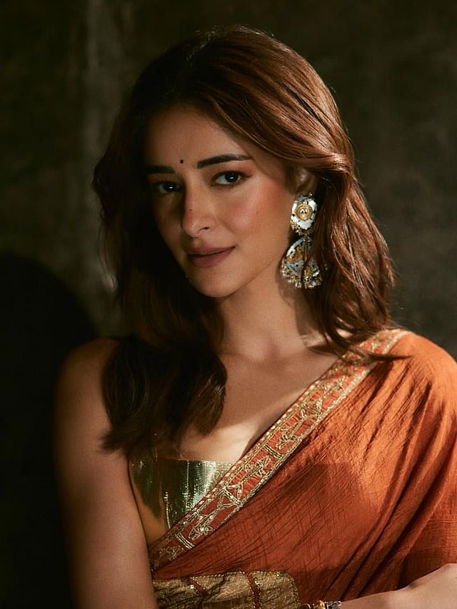 अनन्या पांडे हाऊस ऑफ मसाबाच्या सुमारे 35,000 किमतीच्या रस्ट (जांभळट तांबड्या) रंगाच्या साडीमध्ये दिसली. या साडीने पारंपरिक आणि आधुनिक फॅशनचा सुंदर संगम सादर केला.