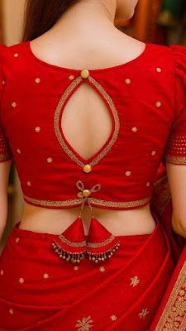 ब्लाऊजच्या बॅकला दोरी डिझाईन करा या स्टाईलमध्ये तुम्ही ब्लाऊजला डायमंड वर्क देखील करू शकता.
