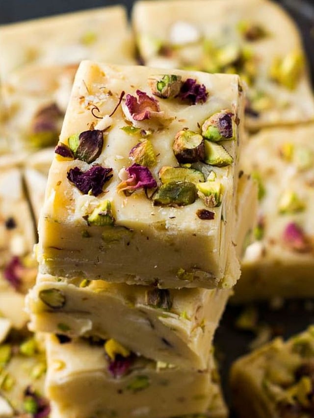 थंड झाल्यावर बर्फीचे चौकोनी तुकडे कापून सर्व्ह करा.