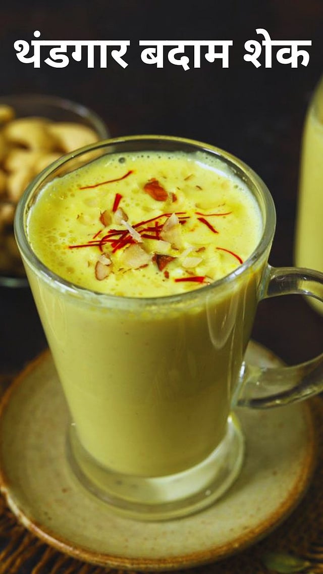 बदाम शेक बनवण्यासाठी रात्री बदाम भिजवून ठेवा. दुसऱ्या दिवशी त्यांची साल काढून मिक्सरला वाटून घ्या. यात तुम्ही थोडे दूध टाकू शकता.