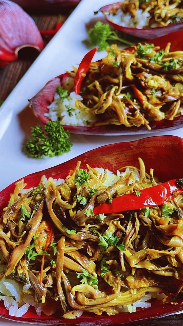 केळफुलं सोलून कळ्यांचे गुच्छ वेगळे करून घ्यावेत.