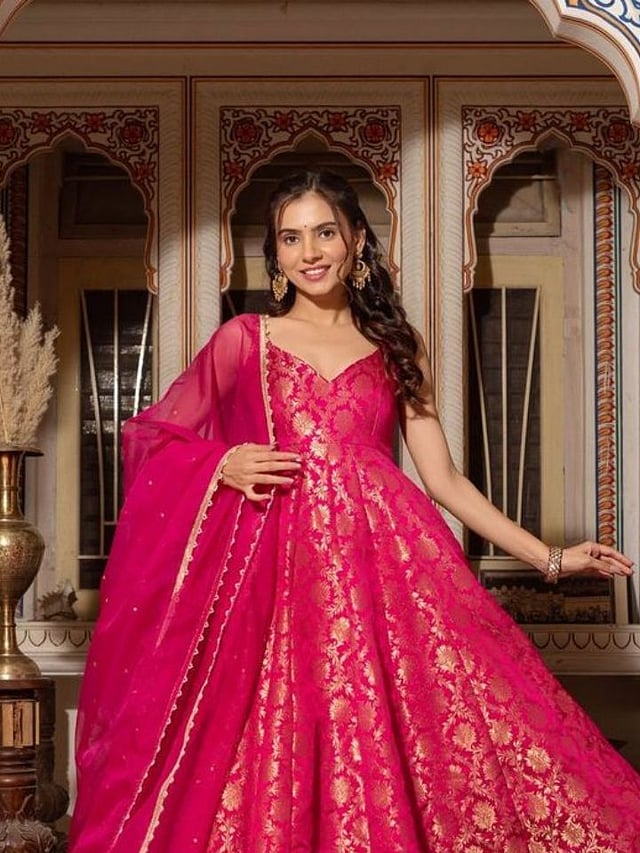 जाड बनारसी फॅब्रिकपासून तयार केलेले अनारकली ड्रेस – राजेशाही लूकसाठी देतात.