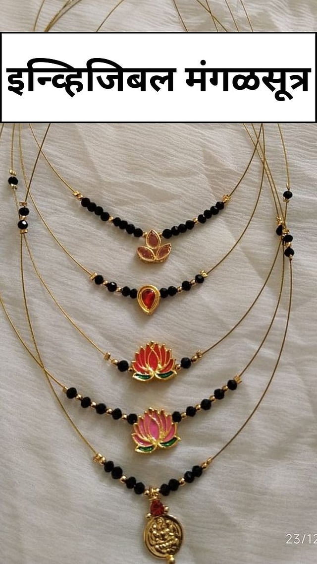 हे मंगळसूत्र घातल्यानंतर फक्त काळे मणी आणि पेडंट दिसते यामुळे याला Invisible मंगळसूत्र असे म्हणतात.
