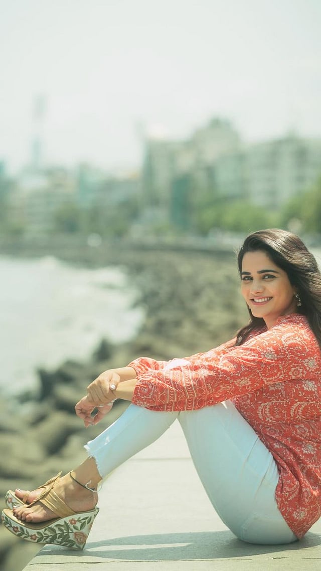 या फोटोमध्ये भाग्यश्री मुबंई मरीन ड्राईव्ह फिरताना दिसते आहे.