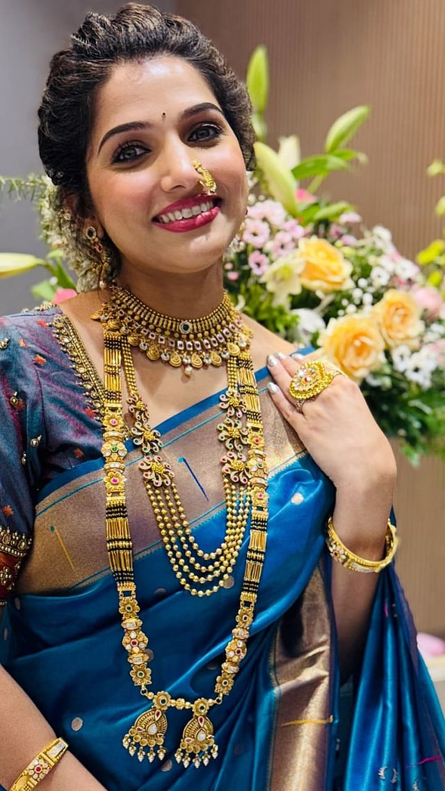 या फोटोशूटसाठी जान्हवीने खास निळ्या रंगाची साडी परिधान केली आहे. तिने मराठमोळ्या अंदाजात लूक केला आहे.