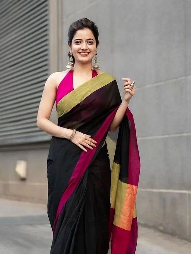 काळी साडी आणि लाल ब्लाऊज ही क्लासिक व सदाबहार जोडी आहे. सण, लग्नसमारंभ किंवा पार्टीसाठी हा कॉम्बिनेशन खूपच आकर्षक दिसतो.