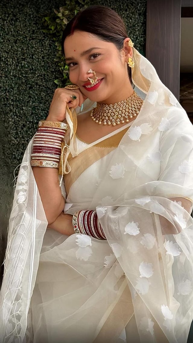अंकिता लोखंडेने नुकतेच साडीतील सुंदर फोटो शेअर केले आहेत. ज्यात तिने पांढऱ्या रंगाची साडी नेसली आहे.