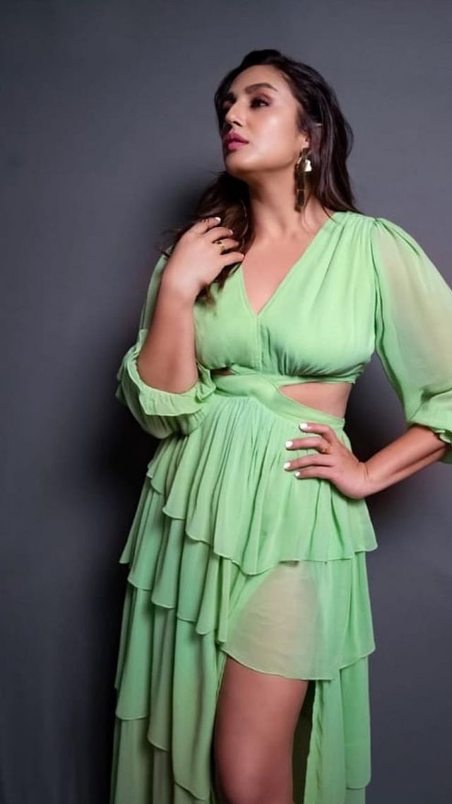 हुमा कुरैशीने तिच्या इन्स्टाग्रामवर पोपटी कलरच्या आऊटफिटचे फोटो शेअर केले आहेत.