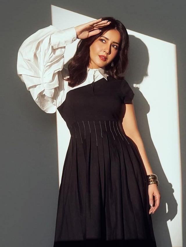 नुकतंच राशी खन्ना हिने ब्लॅक अँड व्हाईट कलरचा वेस्टर्न आऊटफिट वेअर करत स्टायलिश अंदाजामध्ये फोटोशूट केले.