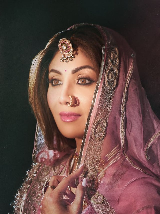 शिल्पाने खास राजस्थानी लूक केला आहे. या ड्रेसमध्ये तिचं अप्रतिम सौंदर्य खुललं आहे.
