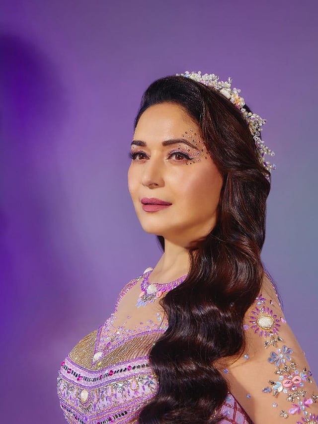 माधुरी दीक्षितने लाइट पर्पल कलरच्या स्टायलिश लेहेंग्यामध्ये जबरदस्त फोटोशूट केले आहे.