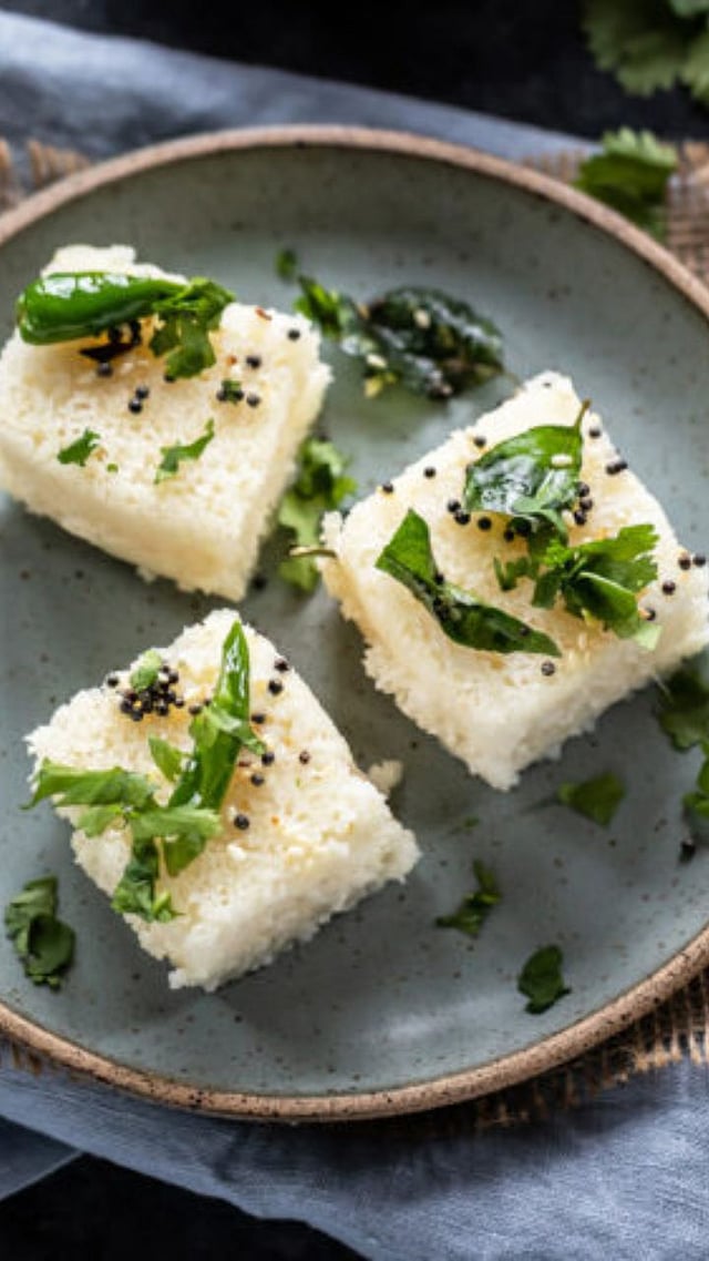 गॅस वर दुसऱ्या बाजूला कढई मध्ये तेल टाकून त्यात मोहरी, जीरे, कढीपत्ता पाने, मिरची टाकून तडका तयार करून ढोकळ्यावर टाकून घ्या.
