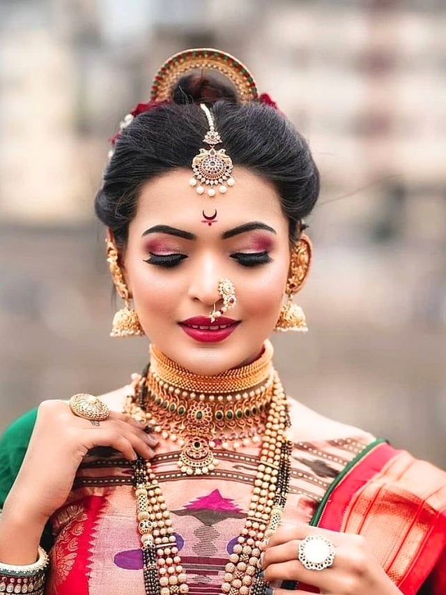 नऊवारी साडीचा लूक केल्यावर लूक पूर्ण होण्यासाठी त्यावर नेहमी सुंदर वेगळ्या रंगाचा शेला घ्यावा.