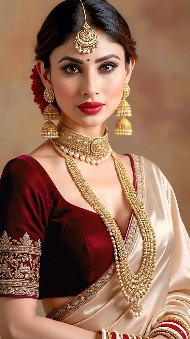 गडद वाईन, नेव्ही ब्लू किंवा एमराल्ड ग्रीन रंगाच्या वेलवेट साडी तुम्ही निवडू शकता यामध्ये लूक उठून दिसतो.