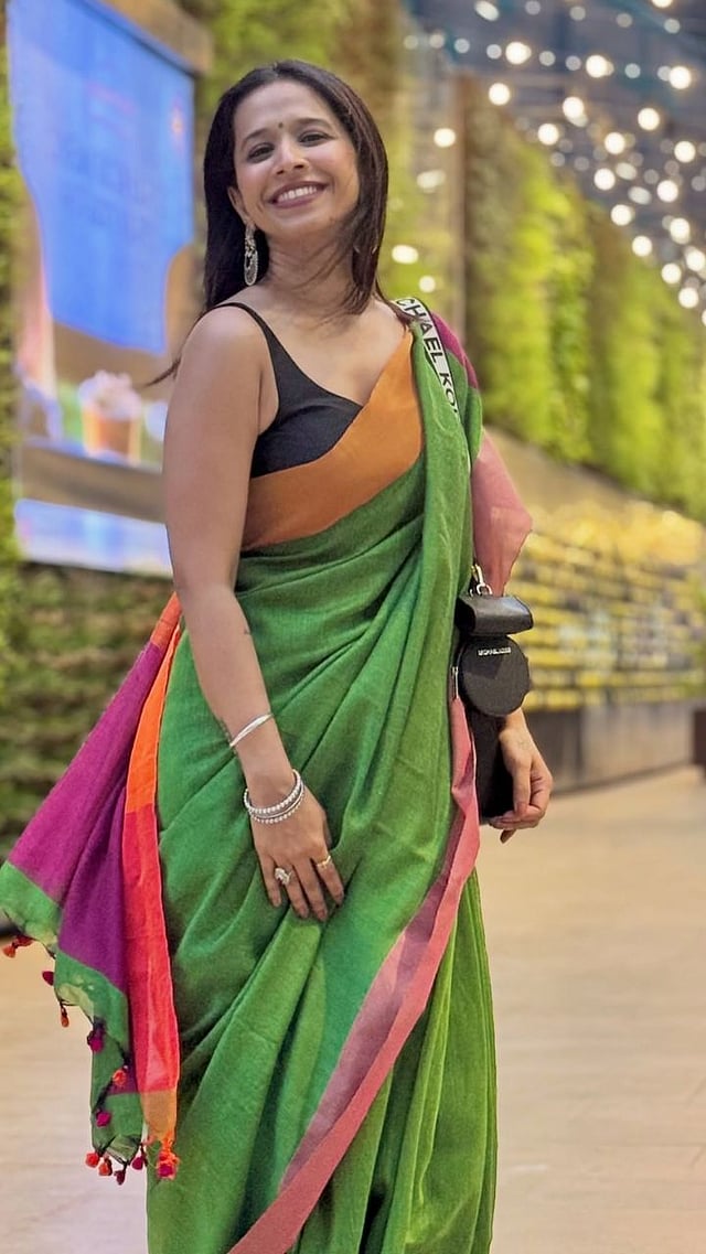 या फोटोशूटसाठी श्रेयाने हिरव्या रंगाची कॉटनची साडी परिधान केली आहे. या साडीमध्ये श्रेया खुपच सुंदर दिसत आहे.