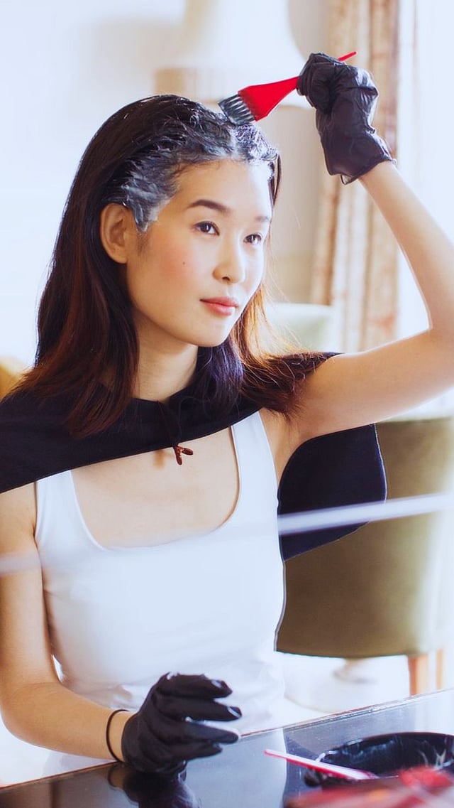 तयार मिश्रण तुमच्या केसांना, विशेषतः ज्या भागांवर तुम्हाला रंग हवा आहे, त्या भागांवर व्यवस्थित लावा. तुमचे केस शॉवर कॅपने झाका. रंग केसांमध्ये मुरण्यासाठी १ ते २ तास तसेच ठेवा. त्यानंतर थंड किंवा कोमट पाण्याने केस धुवा.