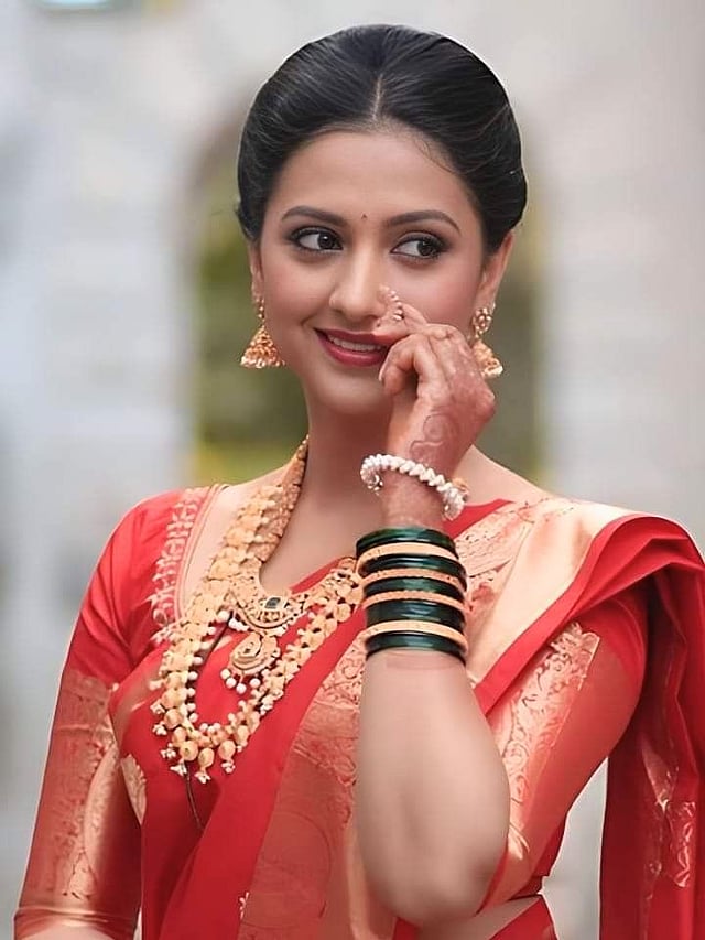 लग्न रिसेप्शन, पार्टी किंवा नाईट फंक्शनसाठी लाल साडी आणि हेवी वर्क ब्लाउज हा उत्तम पर्याय आहे.