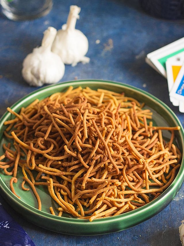 शेव दोन्ही बाजूंनी कुरकुरीत होईपर्यंत तळा आणि नंतर हवाबंद डब्यात भरून टिकवून ठेवा.