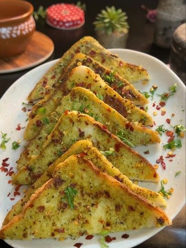 ब्रेडला सोनेरी रंग आल्यावर तव्यावरून काढा, प्लेटमध्ये ठेवा, त्रिकोणी तुकडे करून गरमागरम सर्व्ह करा.