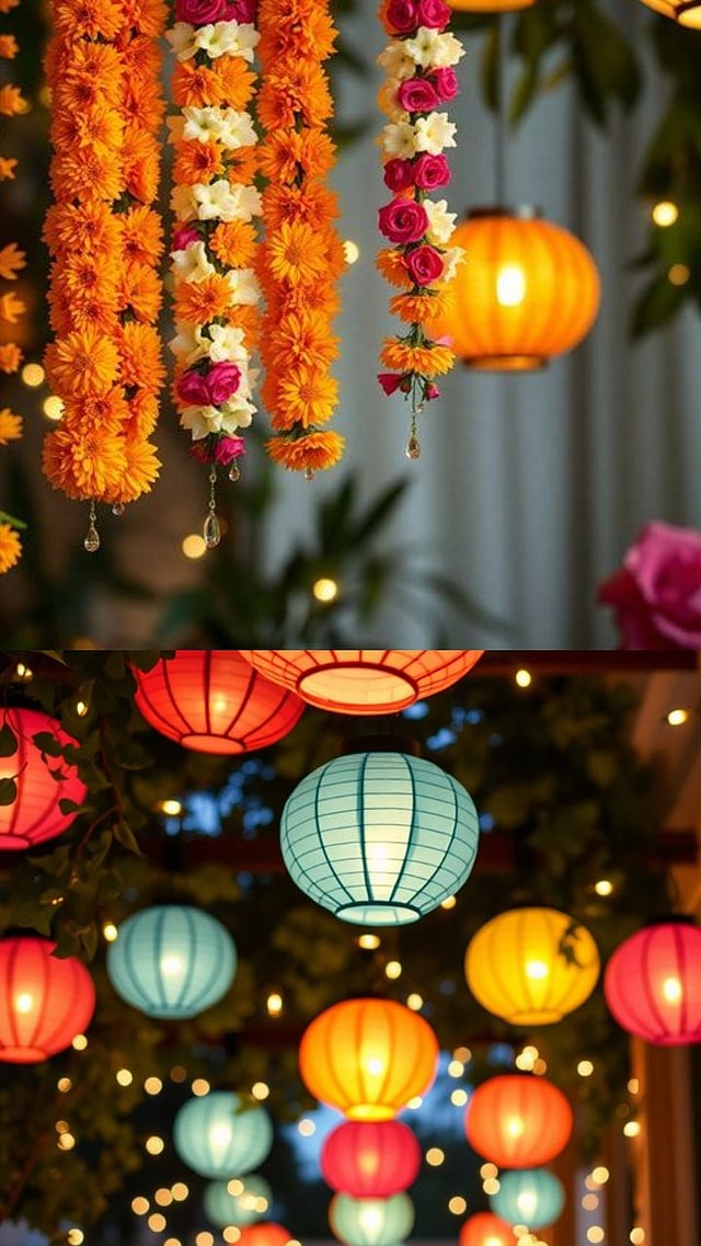 घराच्या भितींवर आकर्षक रंगाबेरंगी माळा सोडून घराची सजावट करू शकता. या माळा अधिकच खुलून दिसतात.