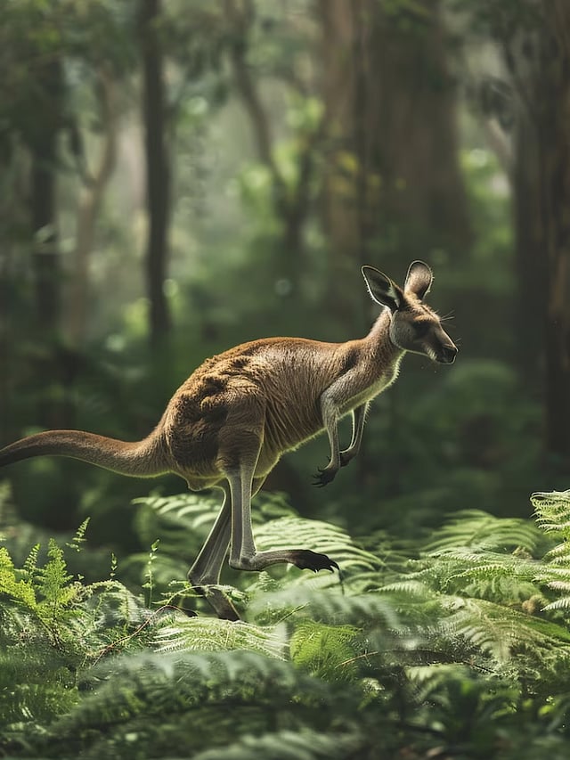 कांगारू उड्या मारताना आपल्या ताकदवान शेपटीचा उपयोग संतुलन राखण्यासाठी आणि हालचालींमध्ये मदतीसाठी करतात.