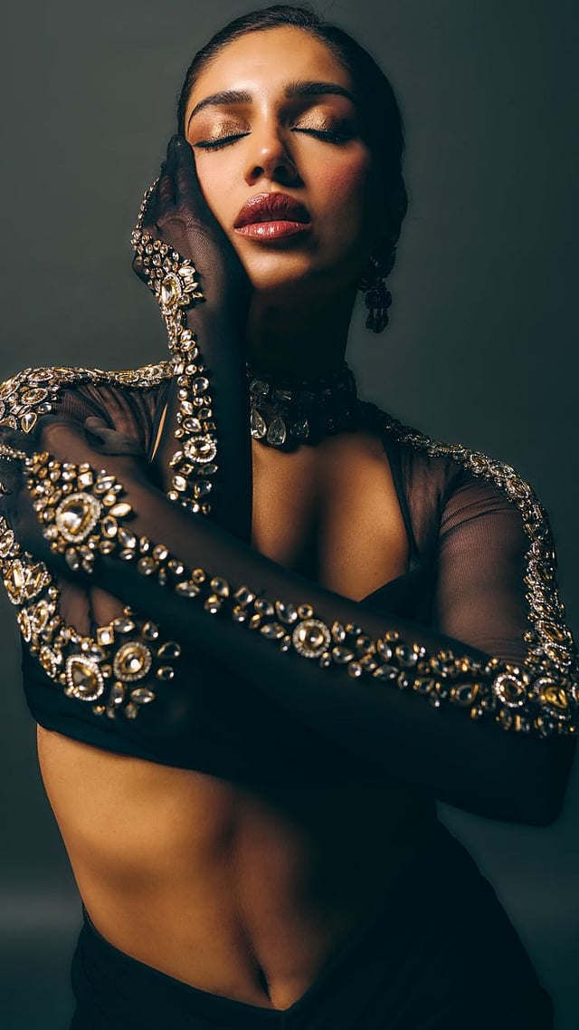 ब्लॅक कलरचा आऊटफिट भूमीने परिधान केला आहे. भूमी पेडणेकर हटके ड्रेसिंग स्टाइल नेहमी सर्वांचे लक्ष वेधून घेते.