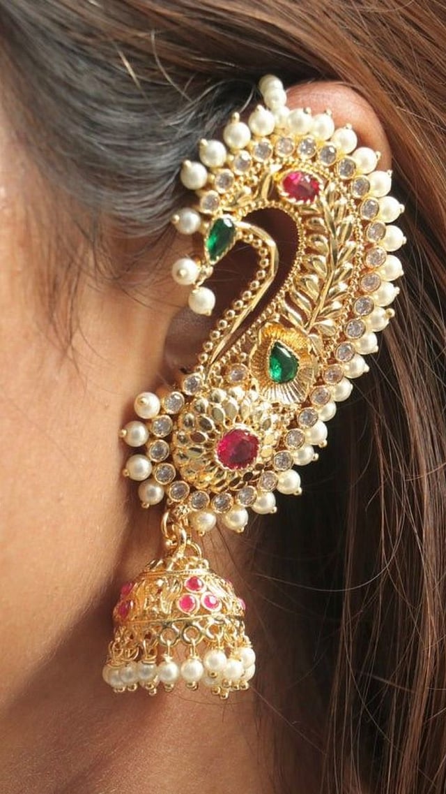 मराठमोळ्या दागिन्यांमध्ये एअरकफ कानातल्यांचा सध्या प्रंचड ट्रेंड आहे. मराठमोळ्या सौंदर्यावर हे कानातले उठून दिसतात.