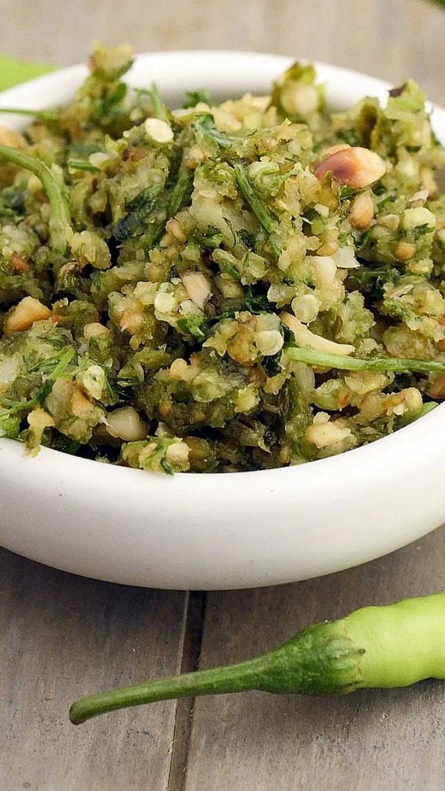 हिरव्या मिरचीचा ठेचा तुम्ही भाकरी आणि चपातीसोबत सर्व्ह करू शकता.