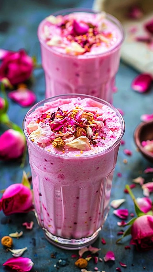 वरून आईस्क्रीमचा एक स्कूप, ड्रायफ्रूट्स आणि थोडा रोज सिरप घालून सजवा.