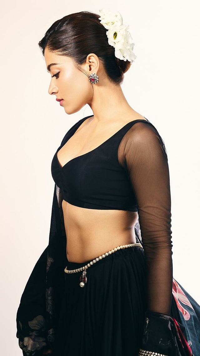 काळ्या रंगाच्या आऊटफिटमध्ये रश्मिकाने तिचा लूक केला आहे. जो चाहत्यांची मने जिंकली आहेत.
