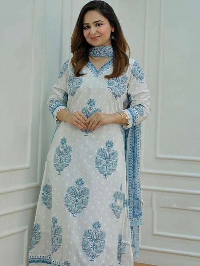 हलक्या रंगाचा प्रिंटेड कॉटन सूट खूपच छान दिसतो. हा सूट कोणत्याही सिझनसाठी योग्य पर्याय आहे.