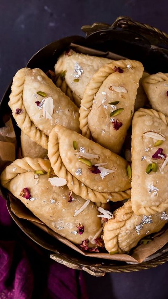 गुजिया ताटात काढून तुम्ही त्यावर थंड साखरेचा पाक पसरवून गुजियांचा आस्वाद घ्या.