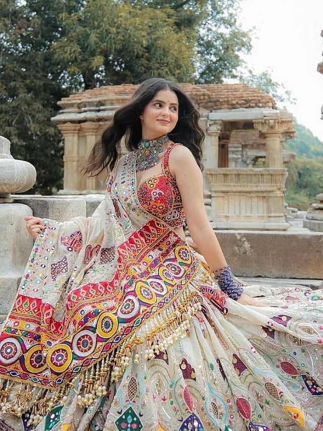 भरपूर घेर असलेली पारंपरिक चनिया-चोली तुमच्या गरबा-लुकमध्ये अत्यंत मोहक वाटतो.