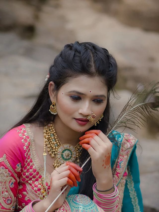 गौतमीने राधा लूक केला आहे. मेकअपसह केसांची हेअरस्टाईल देखील केली आहे.