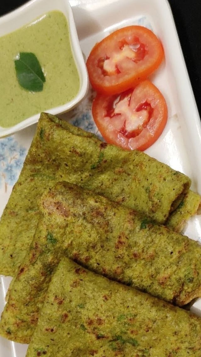 धिरडे दोन्ही बाजूंनी गोल्डन फ्राय करून घ्या. पुदिन्याच्या चटणीसोबत गव्हाच्या पीठाचे धिरडे खा.
