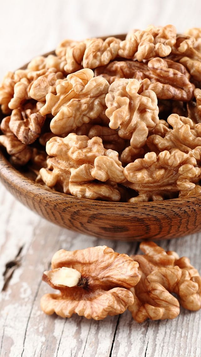 अक्रोडमध्ये बायोटिन, व्हिटॅमिन बी ७ असते जे केसांची चमक वाढवते, केस गळणे कमी करते.