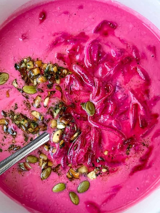 ताजे दही, किसलेले बीट, भाजलेली जीरा पावडर, मीठ, हिरव्या मिरच्या आणि कोथिंबीर इ. साहित्य लागते.