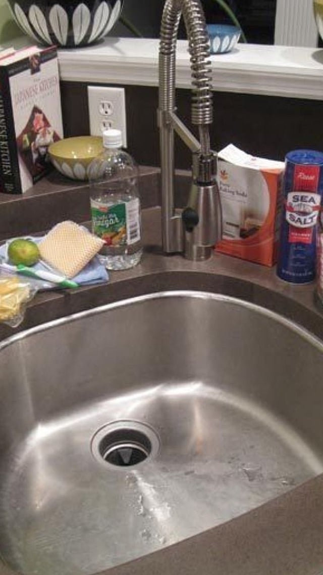 एका बादलीत लिंबाचा रस आणि मीठ मिक्स करा ते किचन बेसिनमध्ये लावा काहीवेळाने बेसिन धुवून घ्या यामुळे काळे डाग देखील निघून जातील.