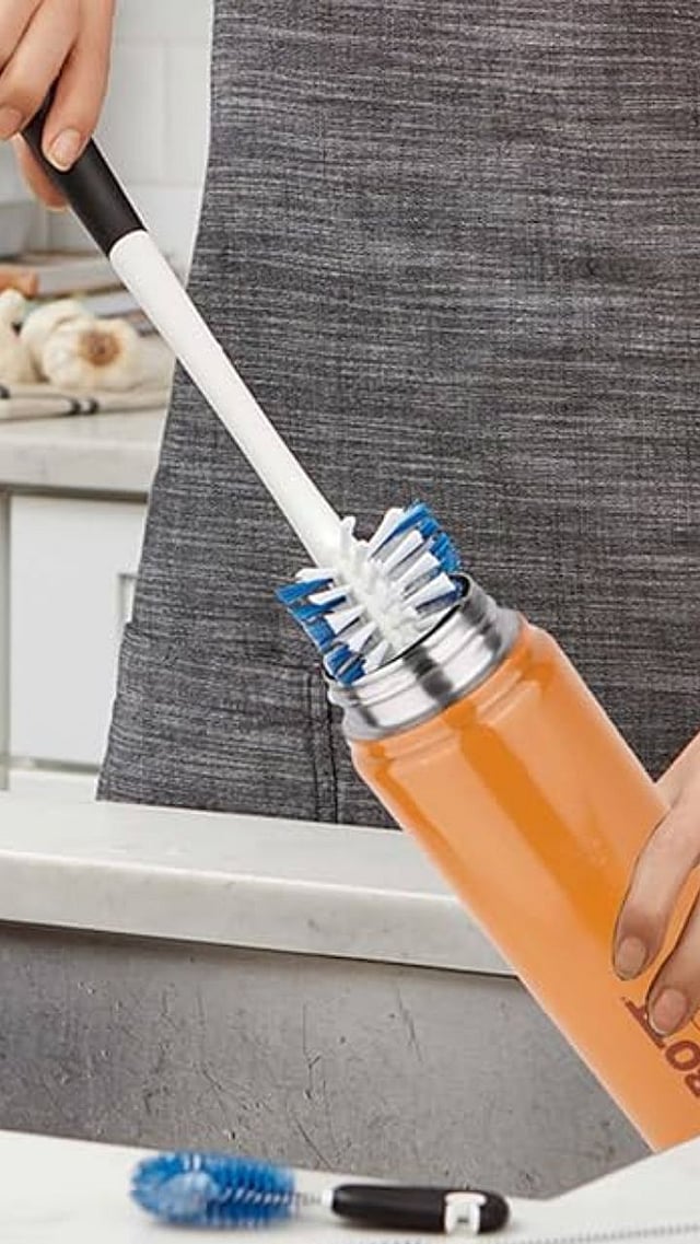 द्रव भांडी धुण्याचा साबण काही थेंब बाटलीत टाका. बॉटल ब्रश किंवा स्पंजच्या मदतीने आतील भाग आणि झाकण नीट घासून स्वच्छ करा.