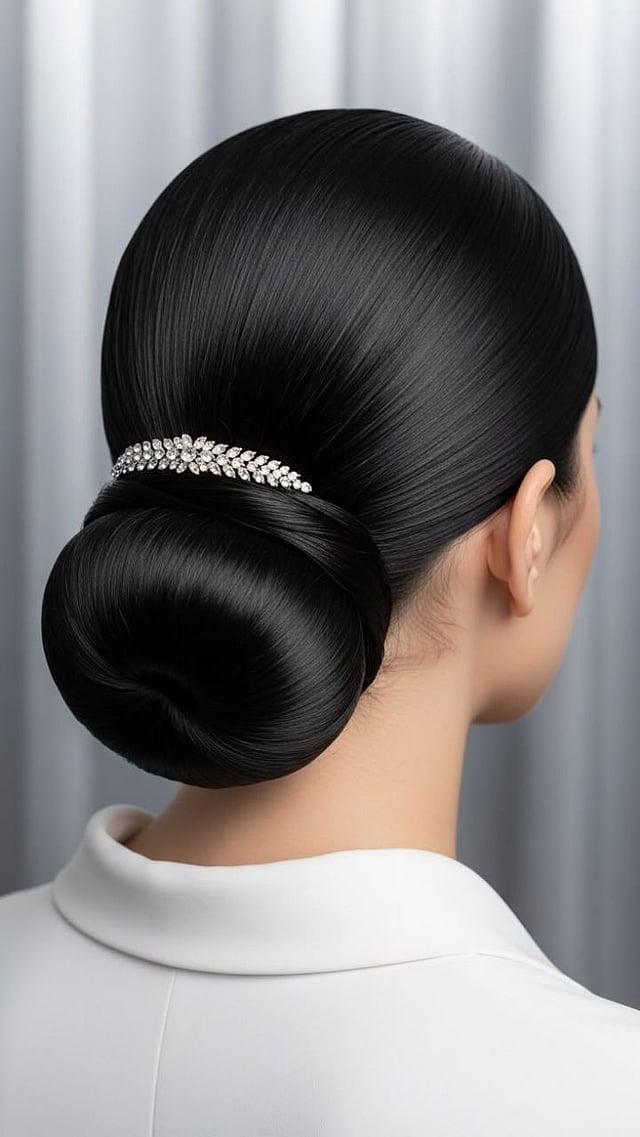 सर्व केस व्यवस्थित विंचरून घ्या आणि हाय पोनीटेल बांधा. पोनीटेल केसांचे दोन भाग करा आणि ते एकमेकांमध्ये दोरीसारखे गुंफा. नंतर हे केस रबर बँडच्या भोवती गोलाकार गुंडाळा. अंबाडा घट्ट राहण्यासाठी 'U-pins' किंवा 'Bobby pins' लावा.
