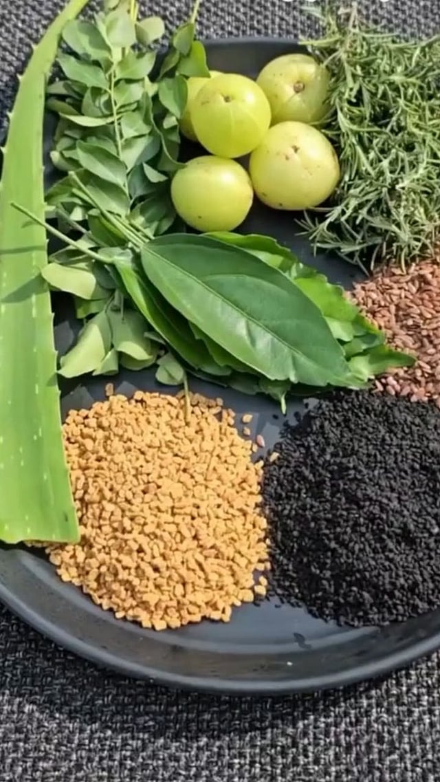 तेल बनवण्यासाठी खोबरेल तेल, कढीपत्ता, मेथी दाणे, कांदा, कोरफड, काळे तीळ हे साहित्य एकत्र करा.