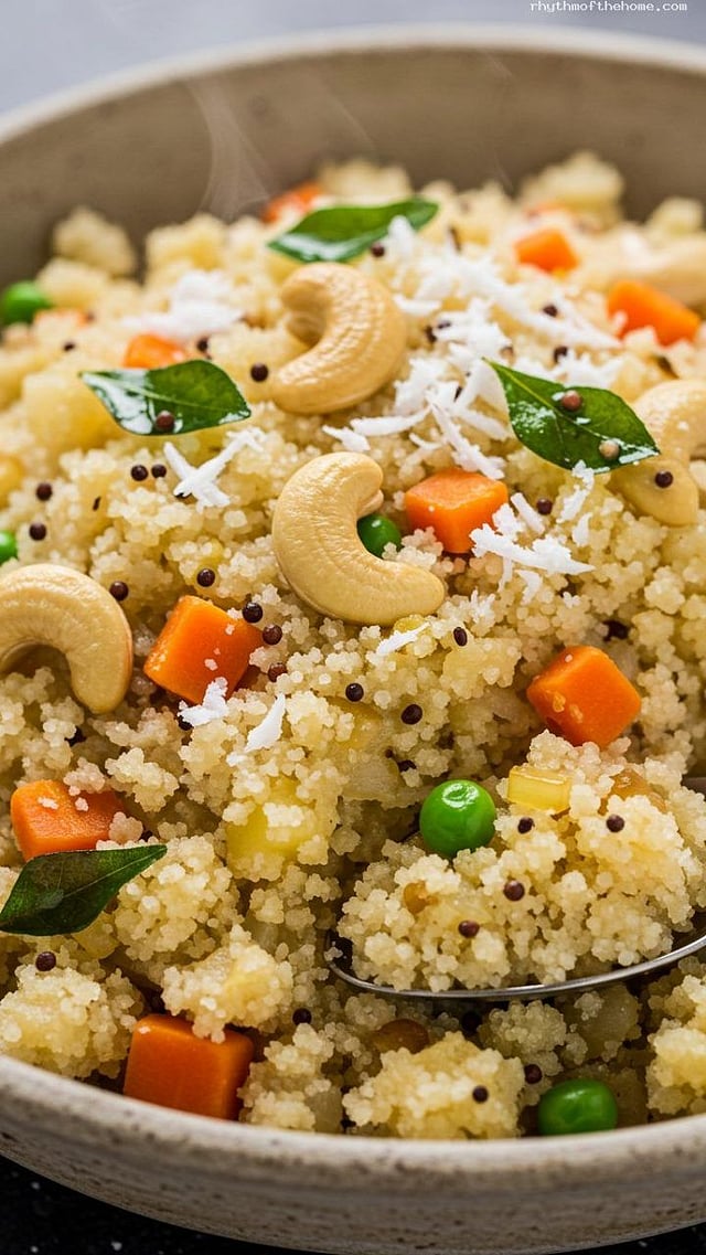 नंतर या संपूर्ण मिश्रणात हळद, मसाला आणि मीठ घालून झाकण ठेवा. अशाप्रकारे सर्व्हसाठी मस्त गरमा गरम रवा उपमा तयार होईल.