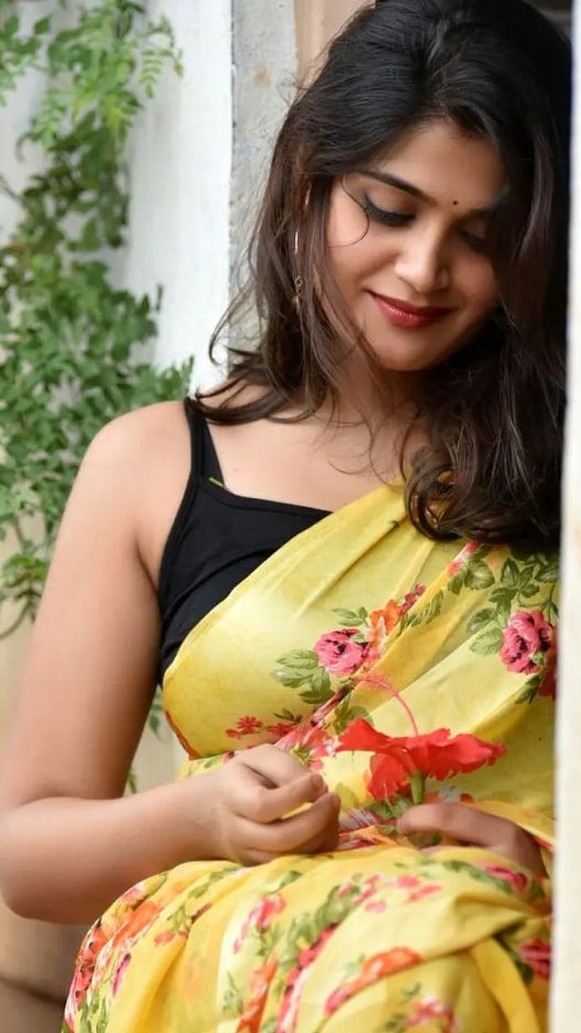 ईशाने फ्लॉरल साडीवरचे फोटो शेअर केले आहेत.