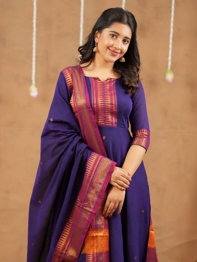 इलकल साडीच्या बॉर्डर व पल्लूचा वापर करून तयार केलेले लॉन्ग गाऊन आधुनिक व एलिगंट लुक देतात.