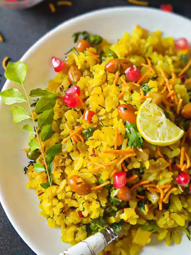 यानंतर पोह्यांवर बारीक शेव, कोथिंबीर, डाळिंबाचे दाणे टाकून सर्व्ह करा.